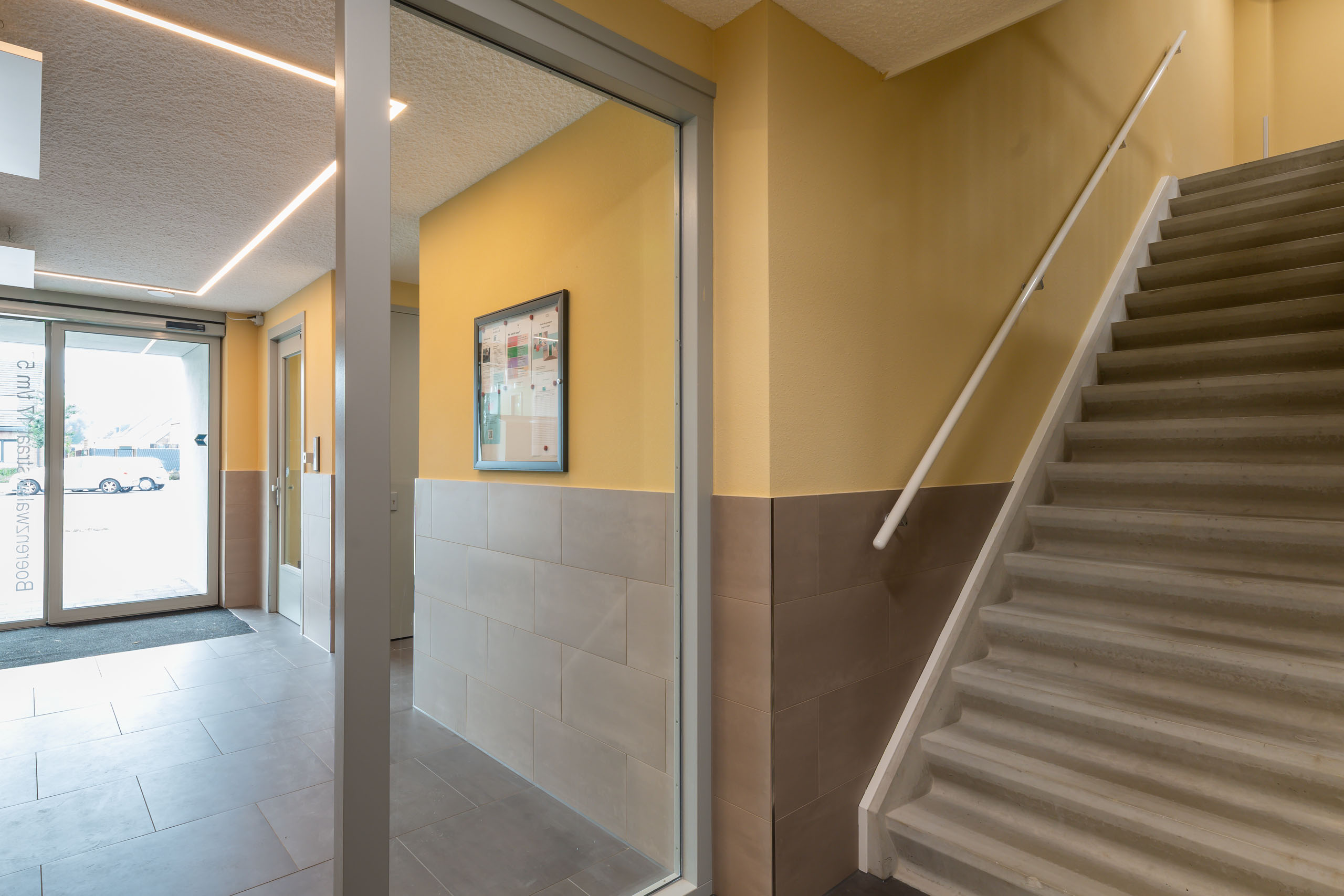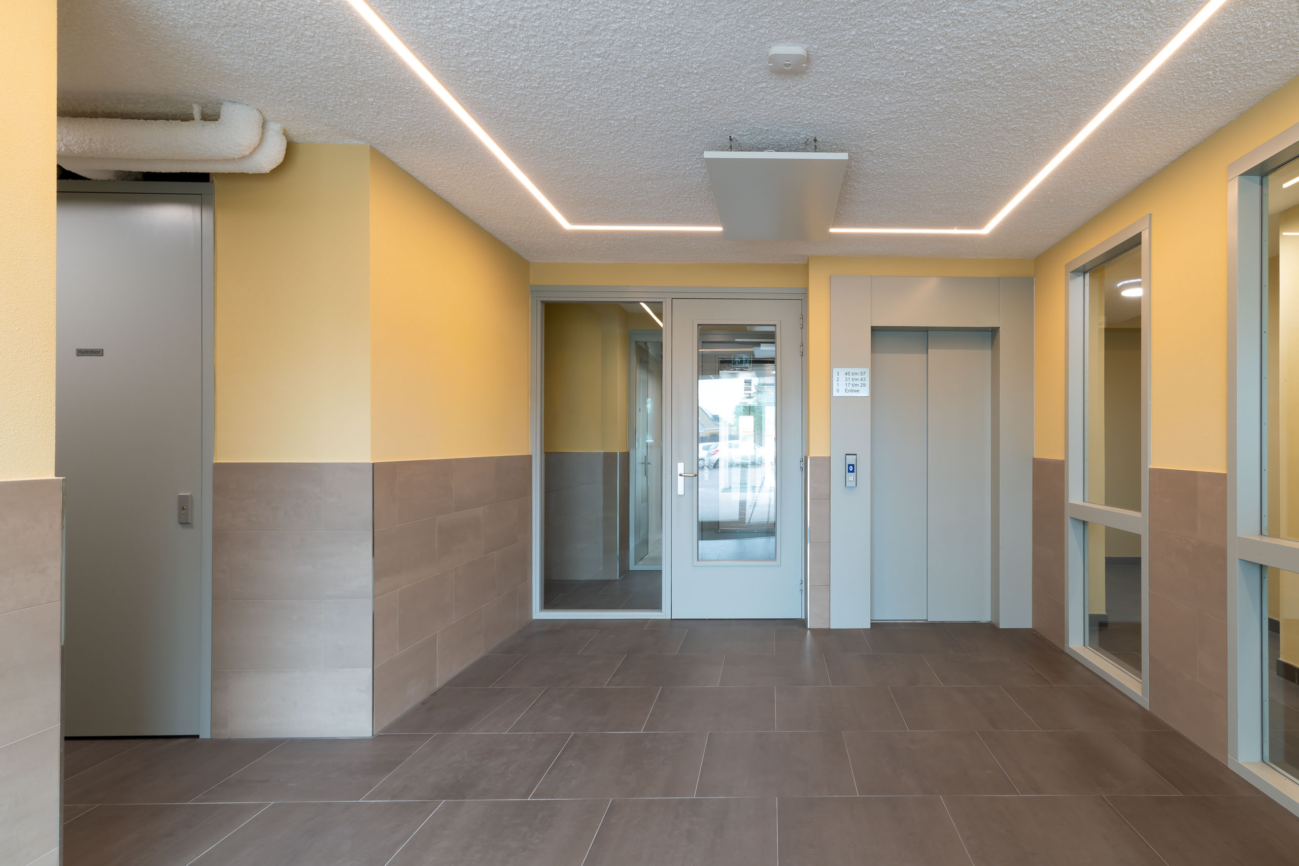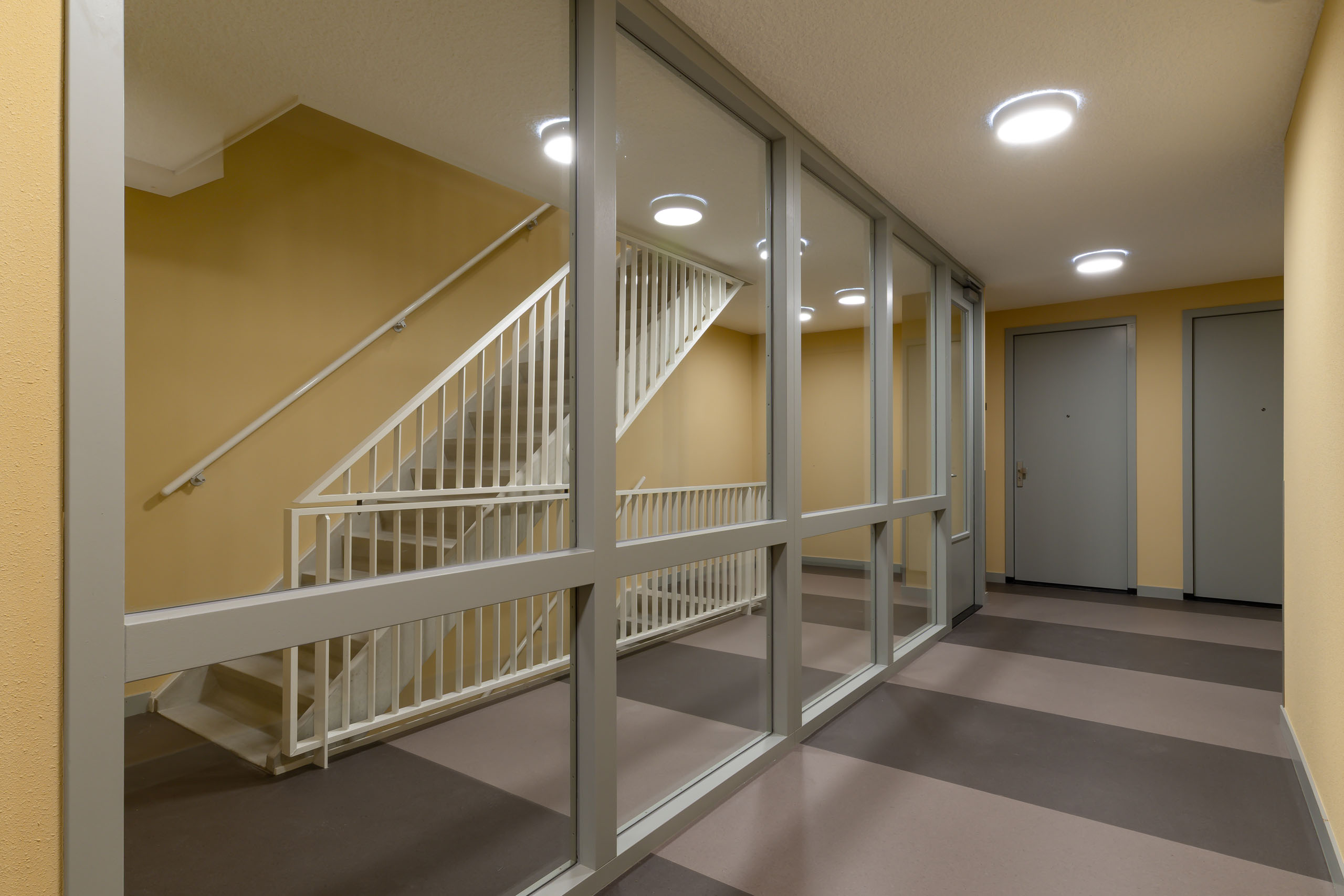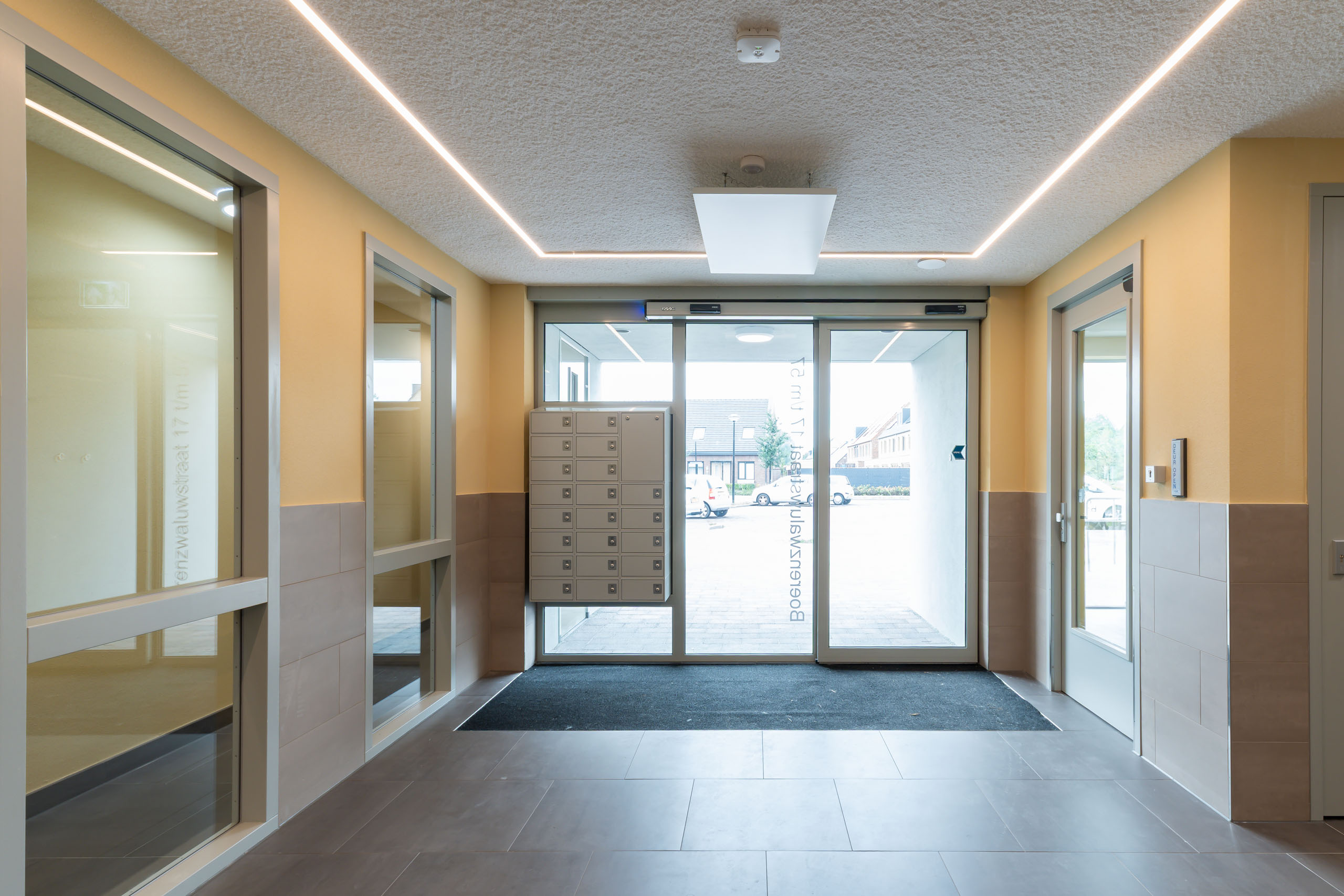 De studio’s hebben we op de begane grond gesitueerd. Ze omsluiten het bergingscluster waardoor er geen blinde gevels zijn en hebben directe entree vanaf het maaiveld. Hierdoor interfereert het afwijkende levensritme zo min mogelijk met die van de overige bewoners. Het gebouw is zowel van de voorzijde als de achterzijde toegankelijk. Dit draagt ook bij aan de levendigheid rondom het gebouw.