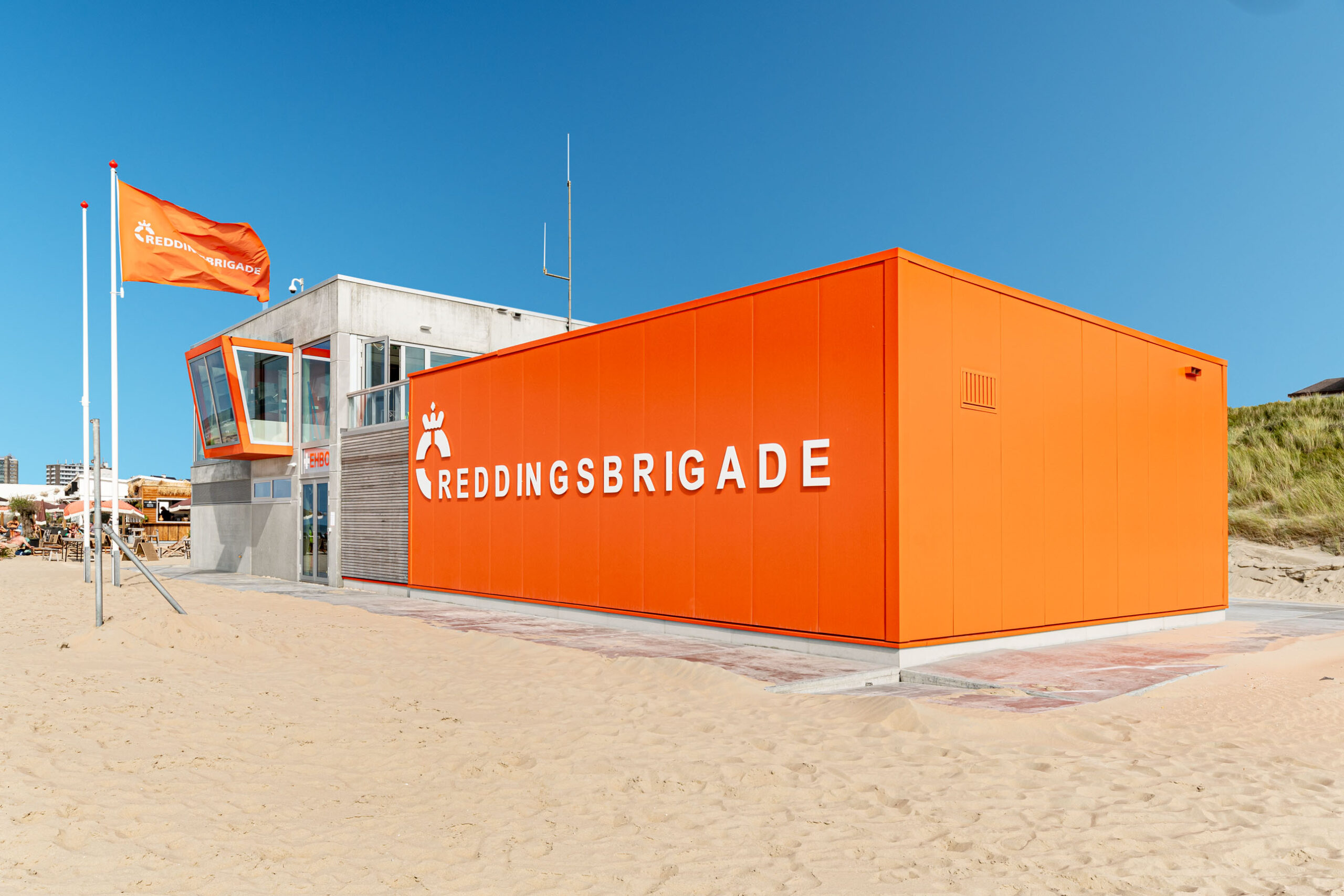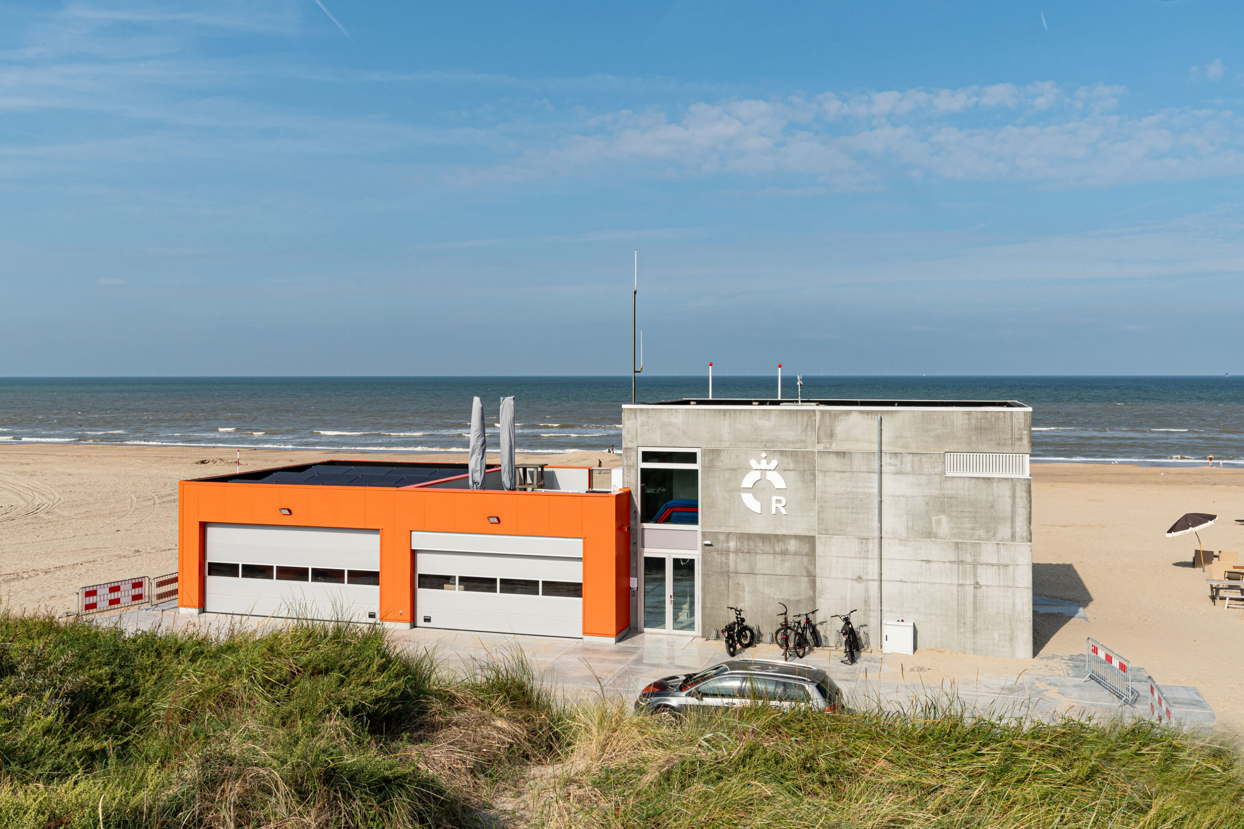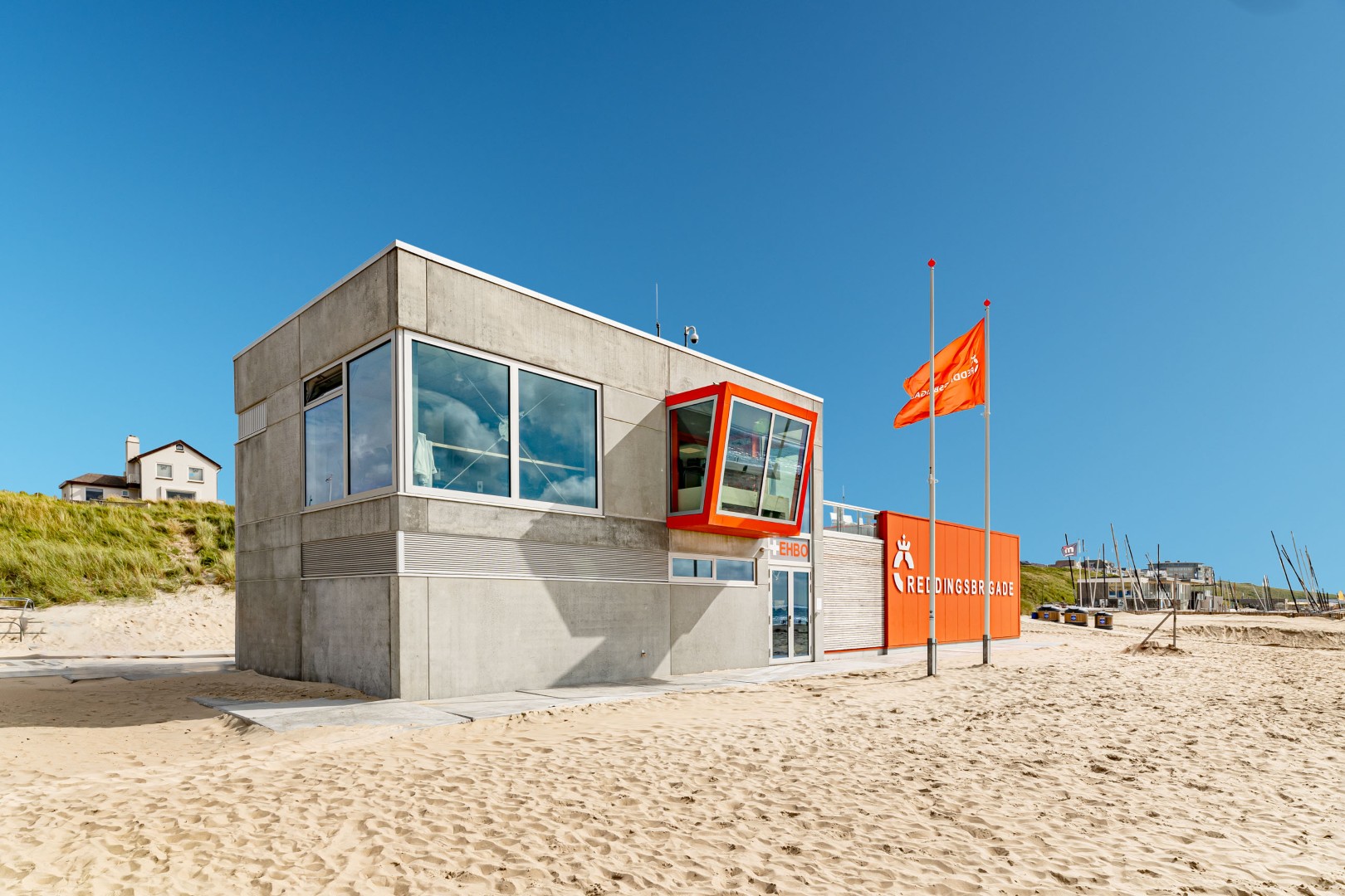 Aan de kust zijn de klimatologische omstandigheden extreem. Wind, zon, zout en stuifzand vragen om robuuste en onderhoudsarme materialen. Wij hebben daarom gekozen voor schoon beton in combinatie met een onderhoudsarme oranje beplating. Toeristen en watersporters kunnen de functies duidelijk van het gebouw aflezen: EHBO post, garage voor voer- en vaartuigen, uitkijkterras en controleruimte zijn duidelijk herkenbaar. Het gebouw is een visitekaartje waarmee Zandvoort zich mede profileert als de badplaats van de metropool regio Amsterdam.