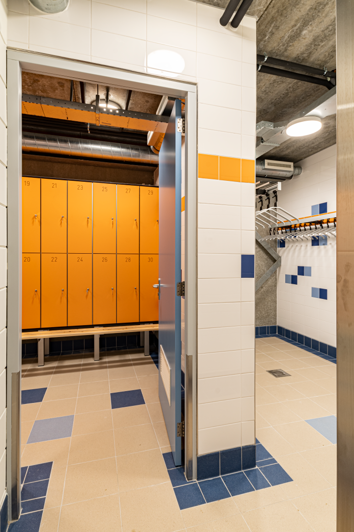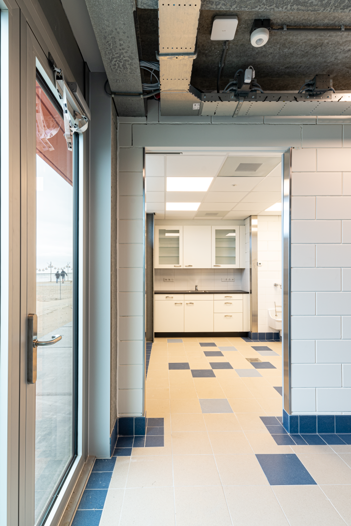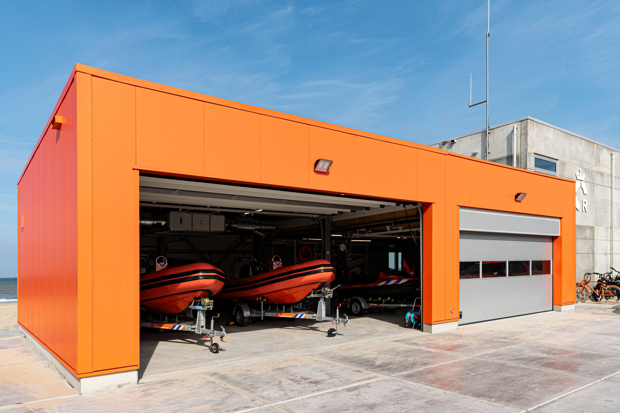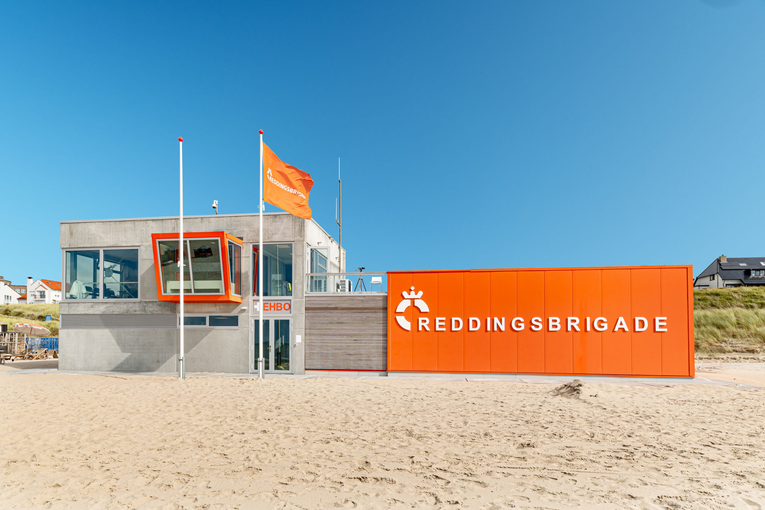 Aan de kust zijn de klimatologische omstandigheden extreem. Wind, zon, zout en stuifzand vragen om robuuste en onderhoudsarme materialen. Wij hebben daarom gekozen voor schoon beton in combinatie met een onderhoudsarme oranje beplating. Toeristen en watersporters kunnen de functies duidelijk van het gebouw aflezen: EHBO post, garage voor voer- en vaartuigen, uitkijkterras en controleruimte zijn duidelijk herkenbaar. Het gebouw is een visitekaartje waarmee Zandvoort zich mede profileert als de badplaats van de metropool regio Amsterdam.